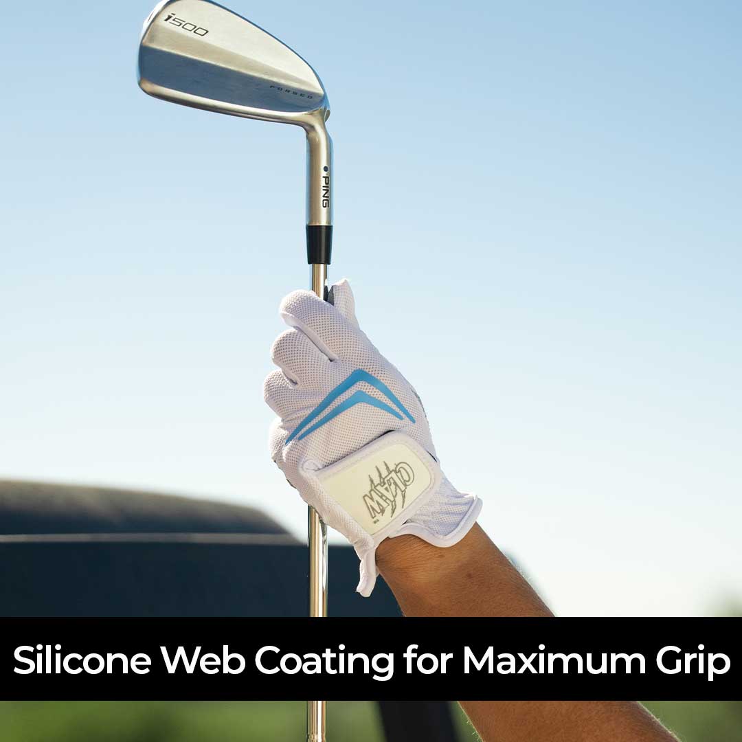 Claw gloves are designed to play cooler, last longer and feel better than leather golf gloves. Leather gloves typically dry out, blacken with a very limited lifespan. After seeing and testing football receiver gloves, we decided to incorporate some of those synthetic materials with a silicone layered palm for maximum grip and performance. Claw gloves are some of the longest lasting gloves on the market with most players reporting 30+ rounds before any signs of wear. Not only do they last forever but they are machine washable to keep them looking and smelling new round after round. The unique silicone grip improves swing confidence and reduces grip pressure.