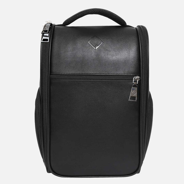 CaddyDaddy introduces our premium golf shoe bags. The luxury bags offer super soft synthetic leather with our ScratchGuard Technology to prevent any scuffs or scratches which keep your bag looking brand new. Included is an internal shoe divider to separate shoes. Also includes are 2 side accessory pockets and a large front pocket and ventilation grommets.
