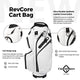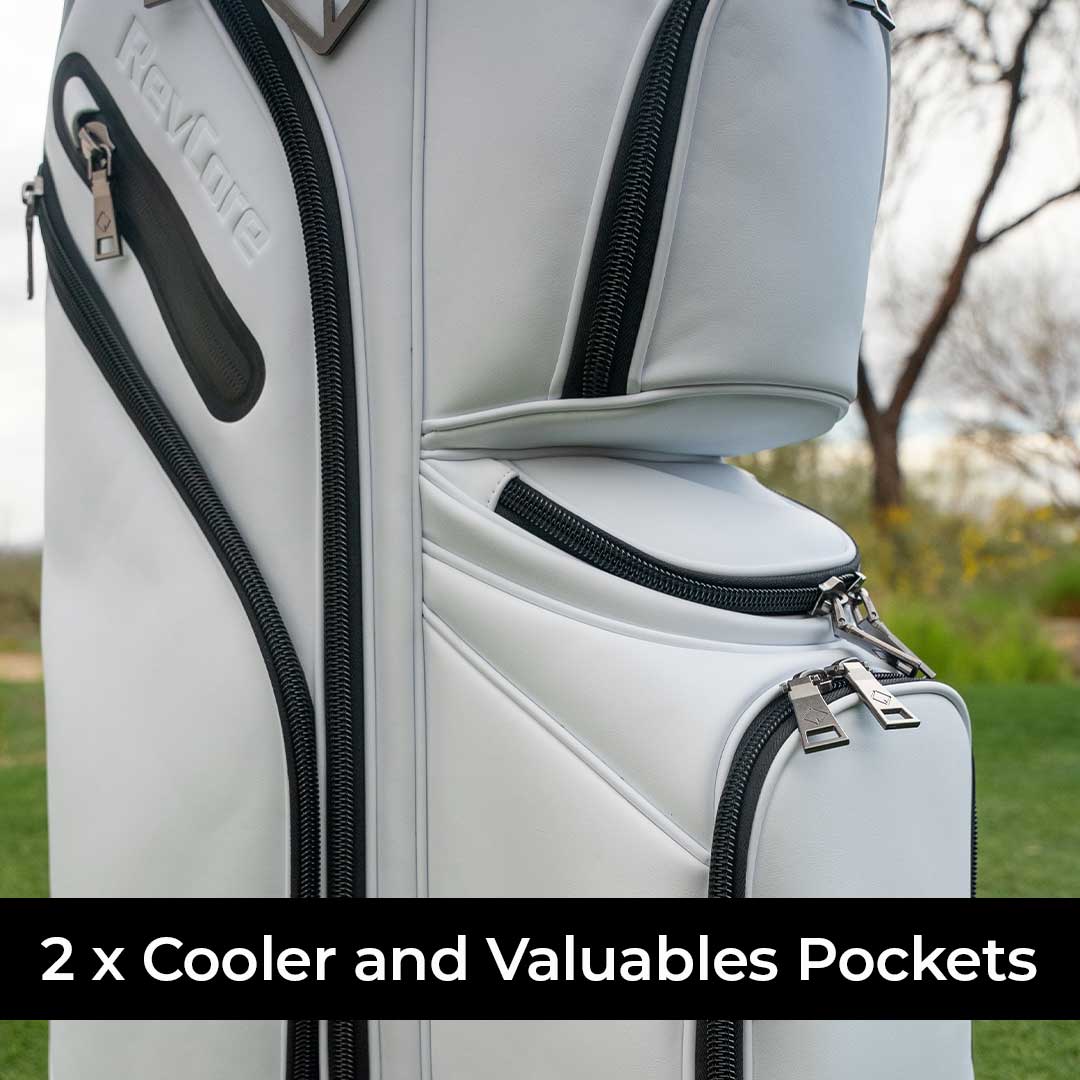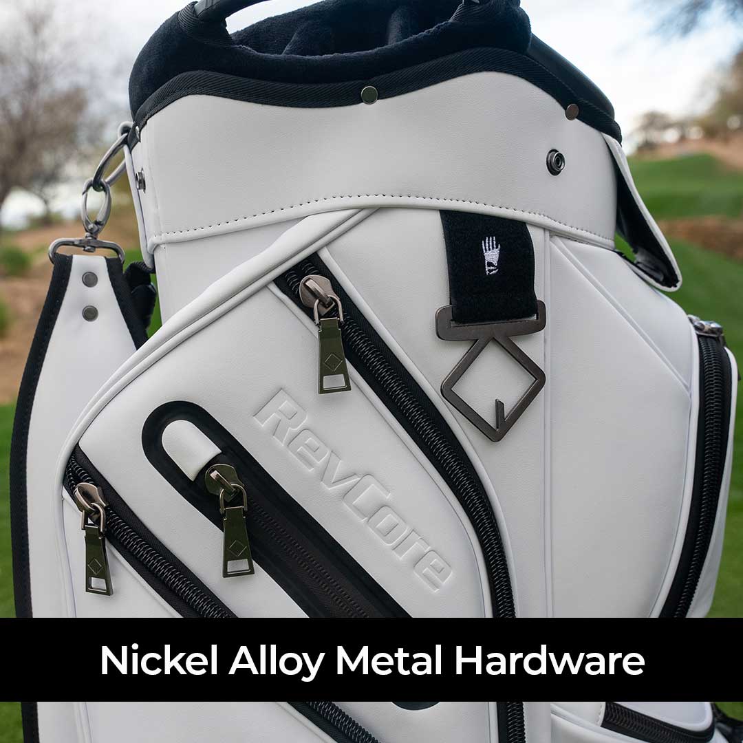 Fear not! RevCore Cart Bags are built with tour-grade synthetic leather which is super easy to care for and fade resistant. Polyester and nylon bags absorb moisture, dirt and fade easily in the sun. RevCore bags wipe down easily, repel water and keep the colorway looking great for years to come.