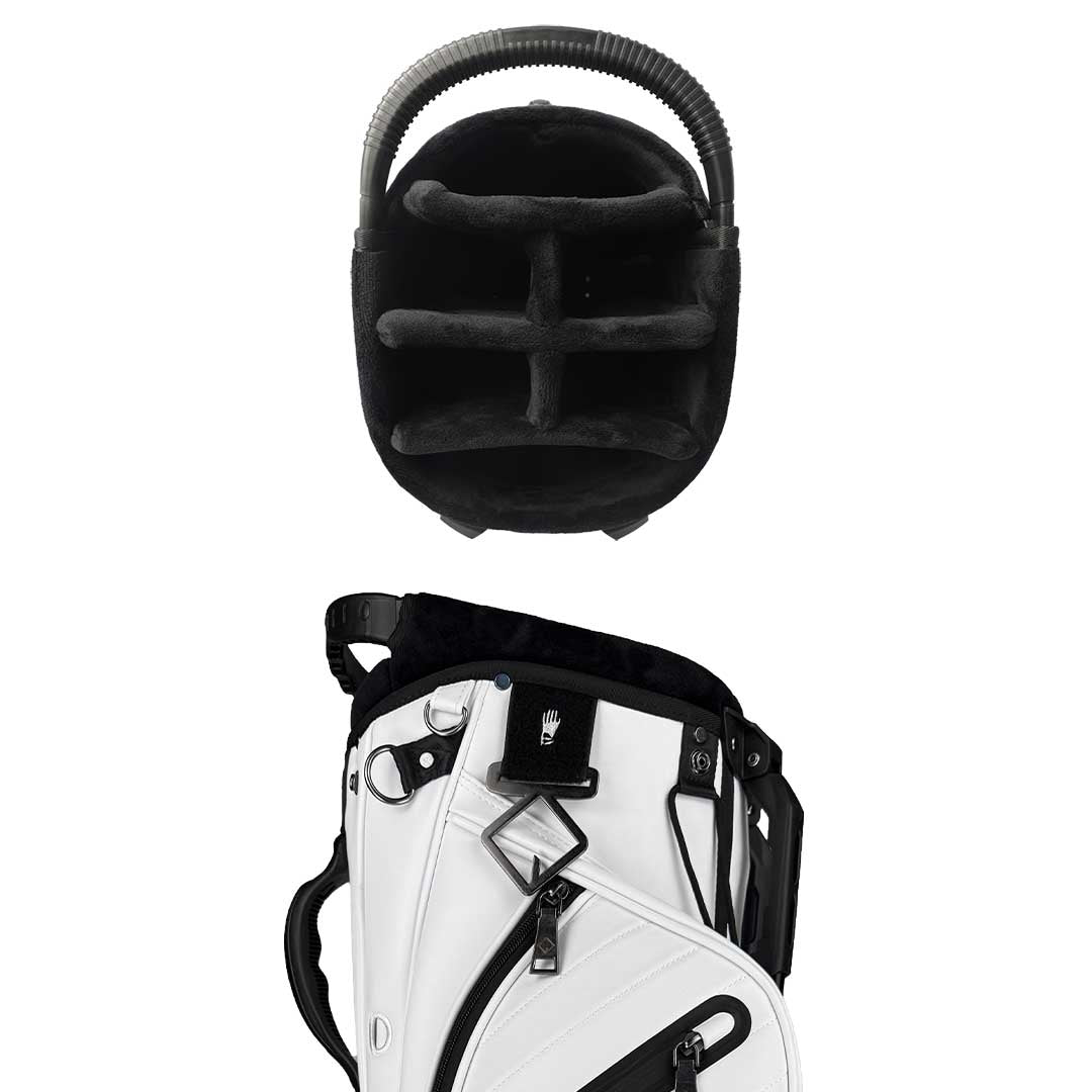 Classic tour-grade premium quality meets affordable luxury with the RevCore Hybrid Stand Golf Bags. Designed for golfers who frequently use carts or push carts, our bags offer practical solutions without compromising style or comfort. The newly designed 6-way plush velvet-lined tops provide seamless organization for optimal club retrieval. Full-length dividers extend to the bottom of the bag, preventing club tangling and jamming for ultimate club safety and organization. A secure stay-flat base ensures your bag remains upright, maintaining stability and minimizing the risk of your clubs falling. To top it off, a protective cart strap is included, adding extra security when used on a riding cart or push cart. Thoughtfully designed with customer-centric features, the RevCore Hybrid Stand Golf Bag delivers performance, durability, and affordability in one stylish package.